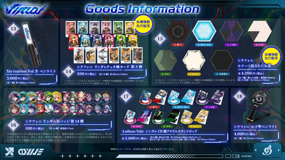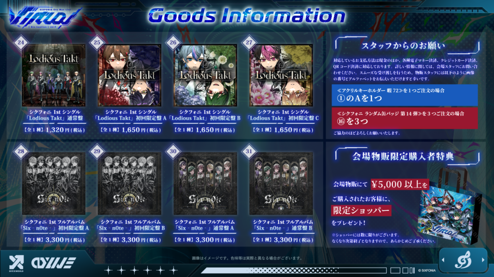- ◆SIXFONIA One Man Live【Six-tuation】vol.Ⅱ -Virtual-グッズ会場販売のお知らせ◆