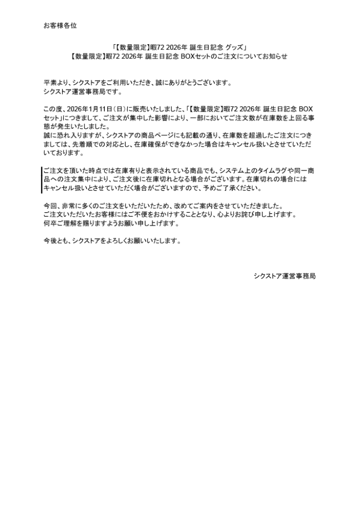 【数量限定】暇72 2026年 誕生日記念 BOXセットのご注文についてお知らせ